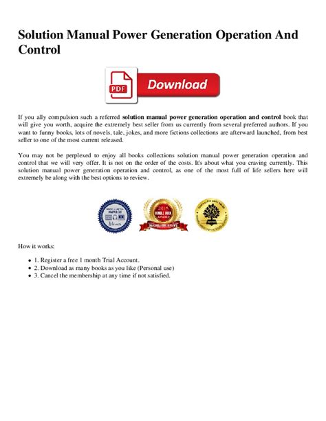 Download PDF Online FREE SOLUTION MANUAL POWER GENERATION OPERATION AND CONTROL Best Books of the Month PDF